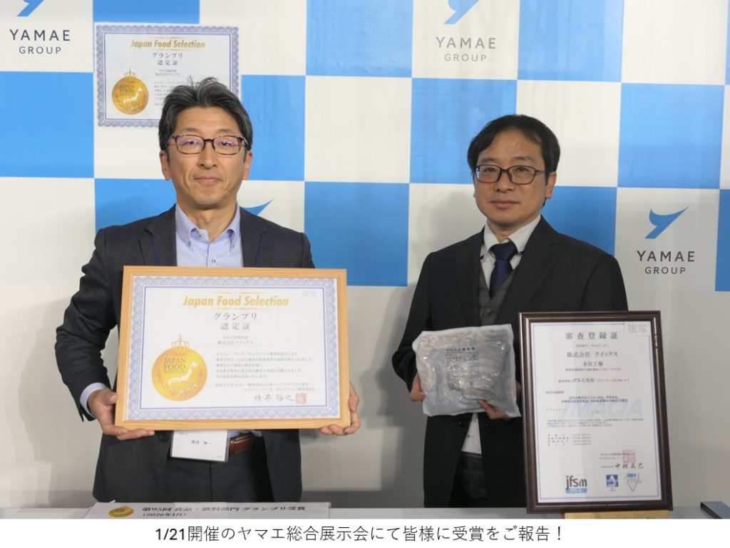 当社グループのクイックスは、2026年1月に「第95回ジャパン・フード・セレクション」食品・飲料部門にて最高位のグランプリを受賞しました。「ジャパン・フード・セレクション」とは、2万3千人規模のフードアナリストによる日本初の食品・食材の審査・認定制度で、100のチェック項目に基づく厳正な審査のもと商品を評価しています。