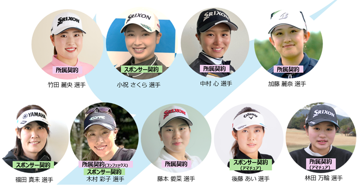 ヤマエグループ契約選手は、竹田麗央選手、小祝さくら選手、中村心選手、加藤麗奈選手、福田真未選手、木村彩子選手、藤本愛菜選手、後藤あい選手、林田万輪選手の計9名となりました。