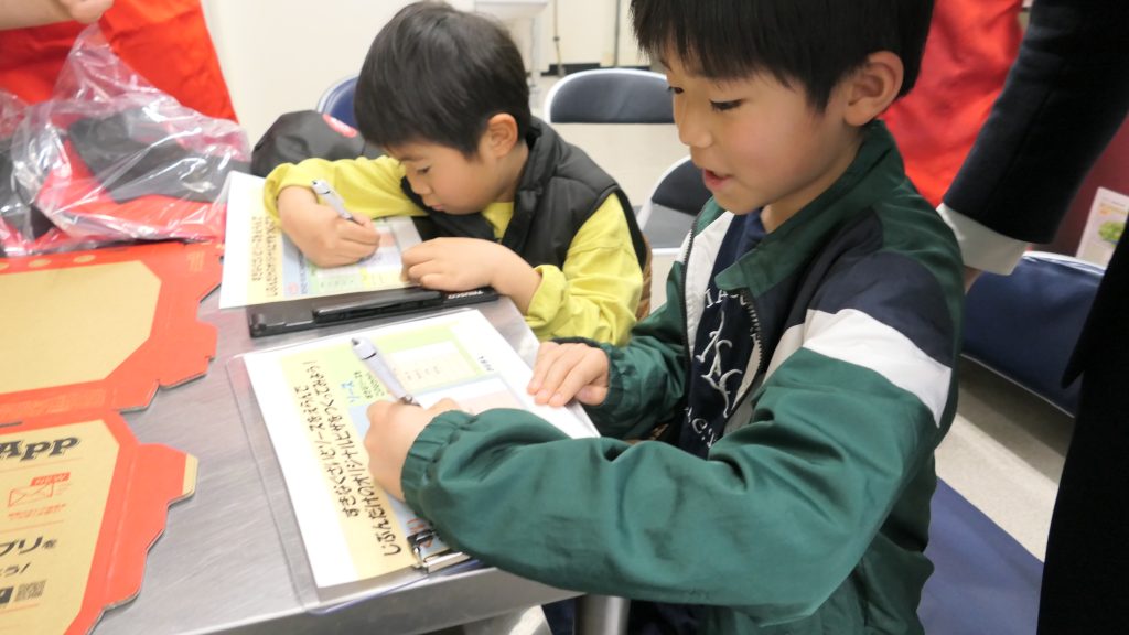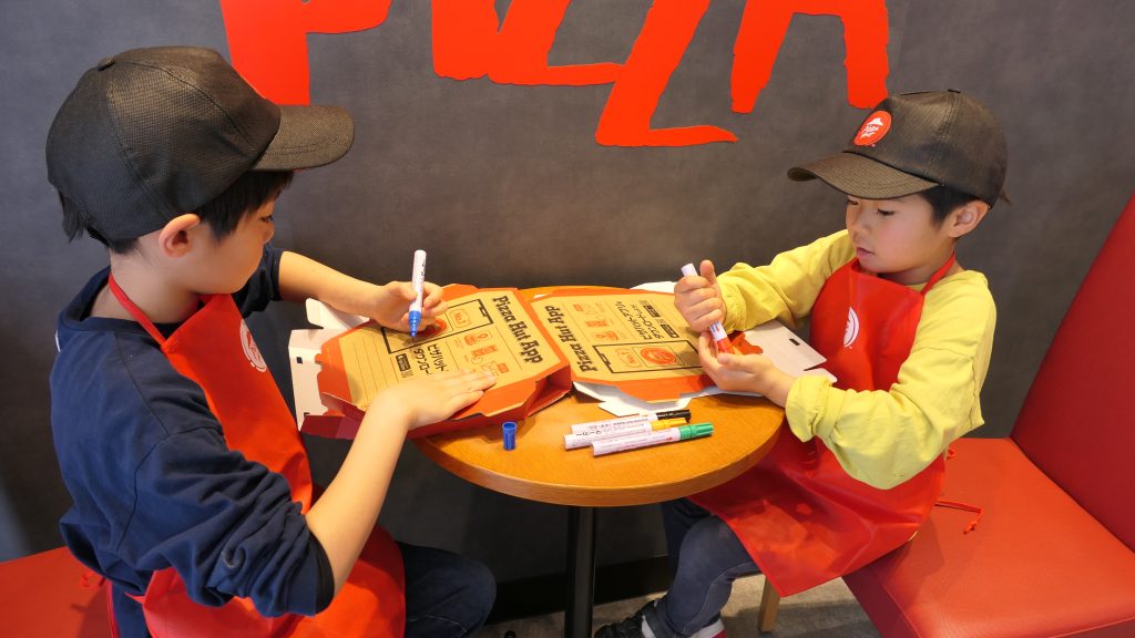 ピザを焼いている間は、オリジナルパッケージを作ることができるので、子どもたちは楽しみながら焼き上がりを待つことができました。