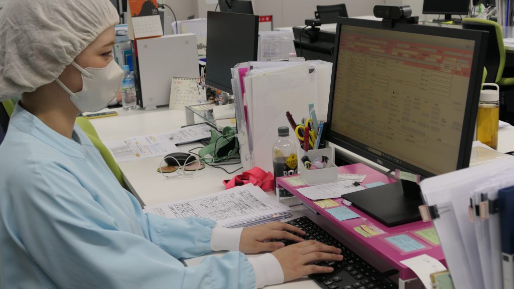 現在はデジタルサイネージを活用し、商品情報を画像や動画で発信するプロジェクトを進めています。最新技術を取り入れることで、多国籍なスタッフに対してもより正確・迅速に情報を届けたいです。他部署とも連携し、さらに効率的な生産体制を築くことが私の目標です。