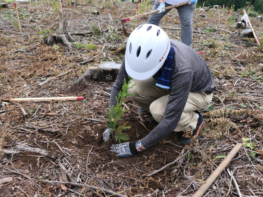 今回植樹したのは花粉をほとんど出すことのない杉の苗木で、