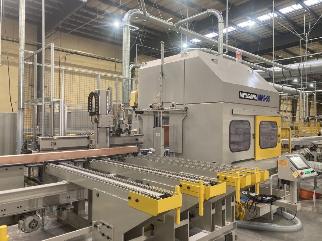 最新鋭の機械を導入し、木材の投入や積載・手加工作業を少人化・無人化、