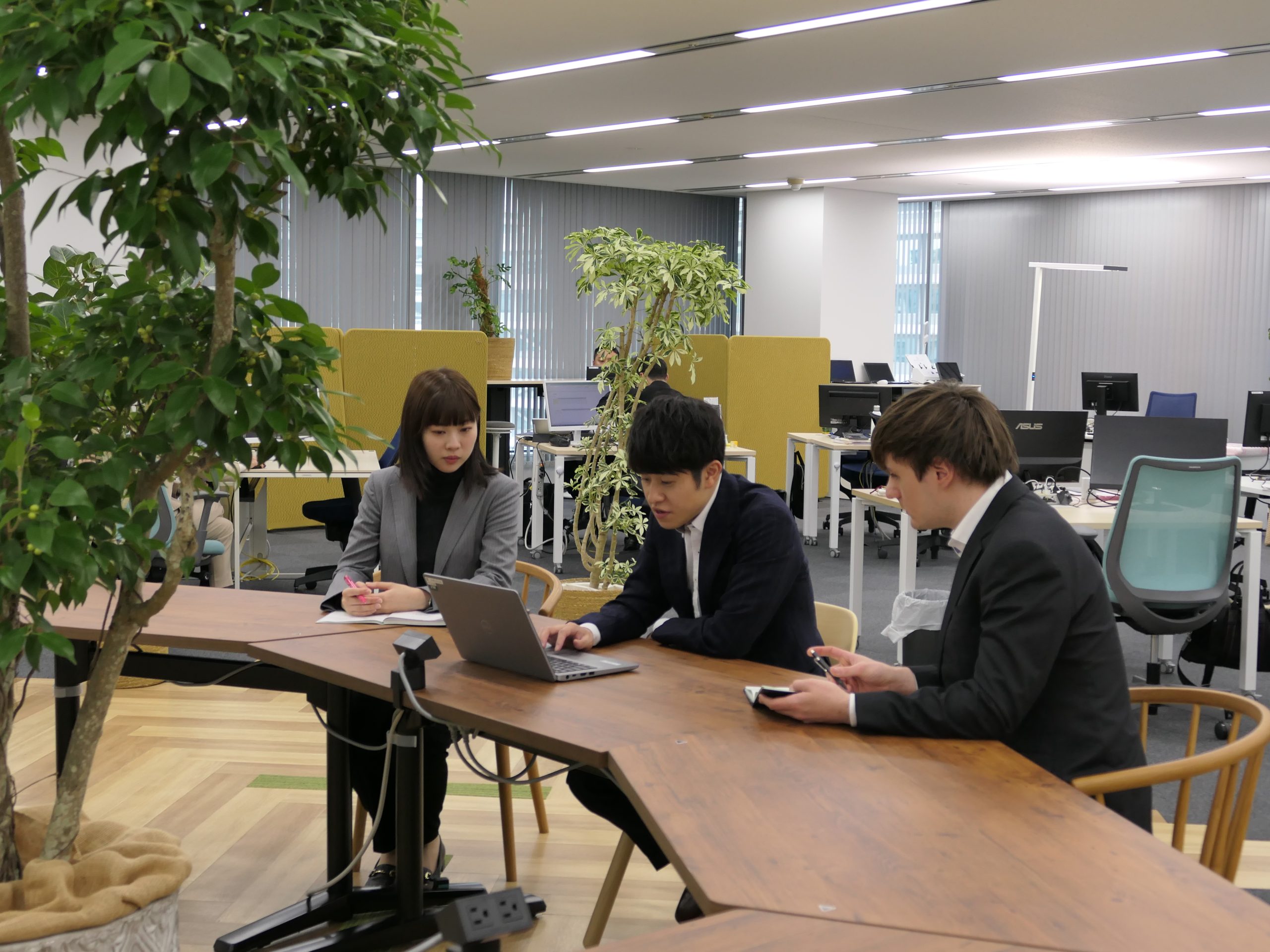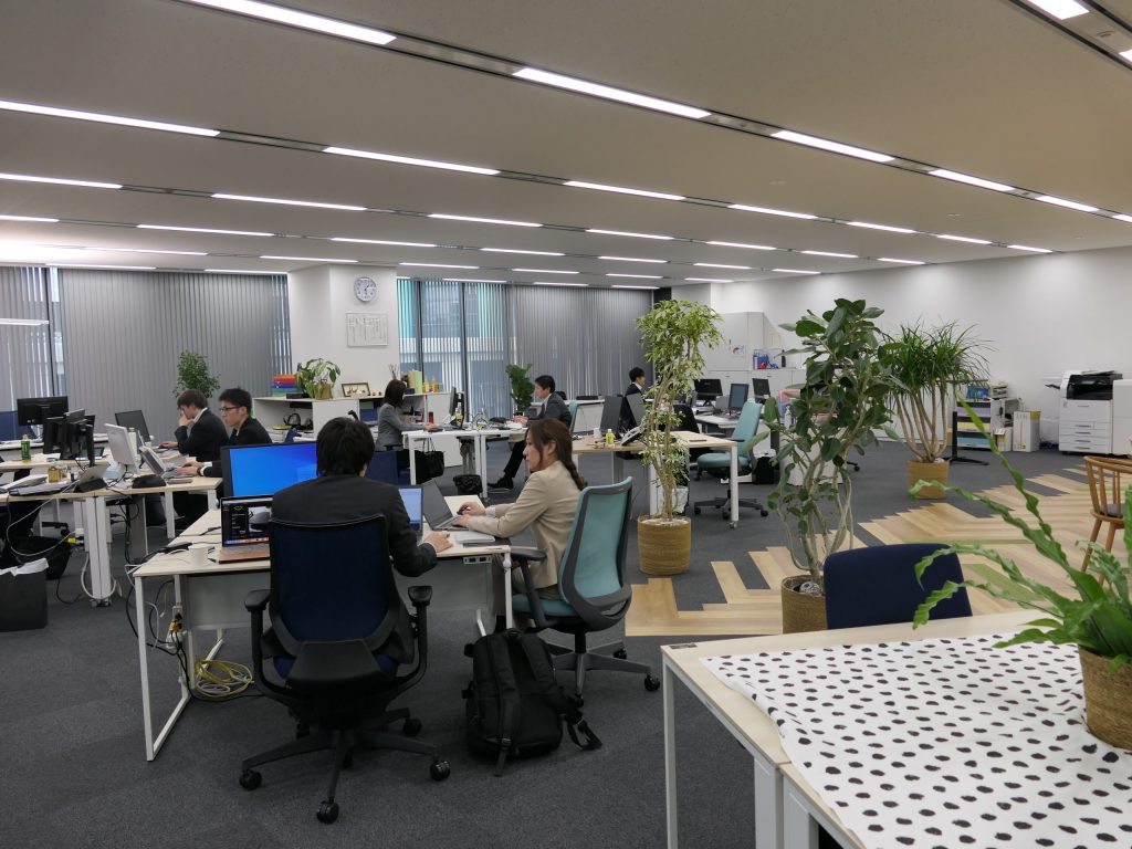 本社6階のフロンティア部・海外事業部の合同フロアは、緑を多く取り入れ、