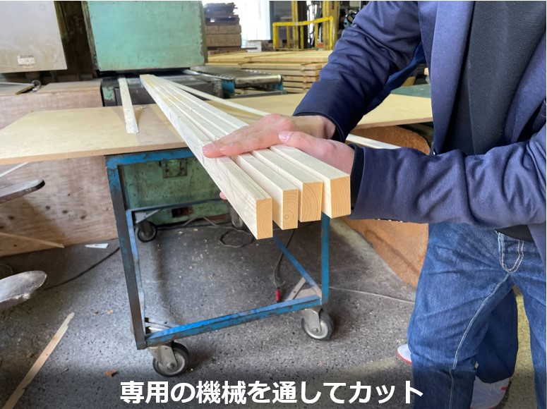 時間をかけて乾燥・加工し、家具の芯材として使用されています。