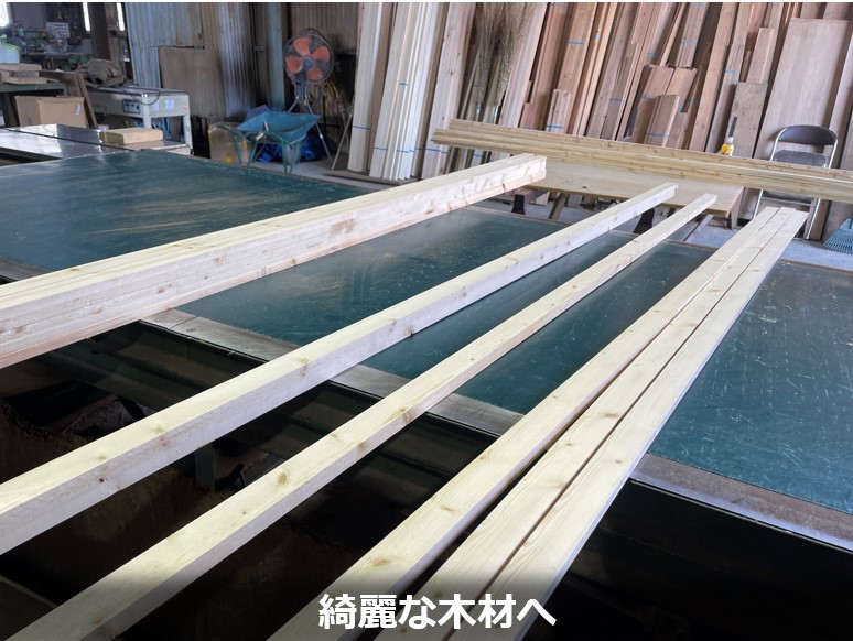 そこで、プロセス井口さま では、現場で使用するのが難しくなった木材をヤマエ久野から仕入れ、