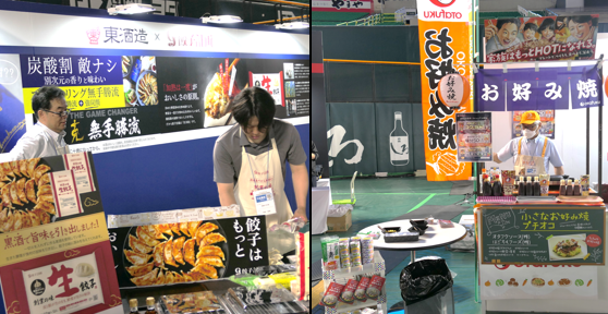 「東酒造 と 餃子計画」「オタフクソース と はごろもフーズ」がコラボして商品を提供するブース。