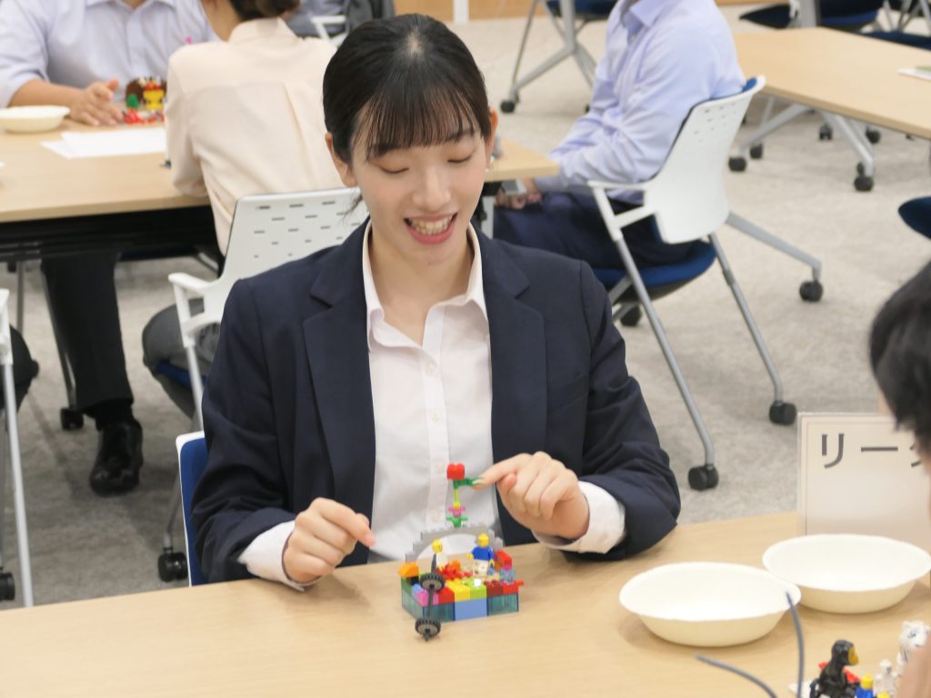 自分の考えを表現する機会はなかなか無く、始めは、少し恥ずかしさがあったのですが、徐々に楽しさに変わっていきました。また、レゴを通して他のメンバーの発表を聞くと、普段よりも人柄を深く知ることができるような気がしました。