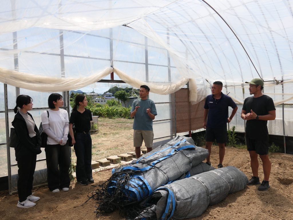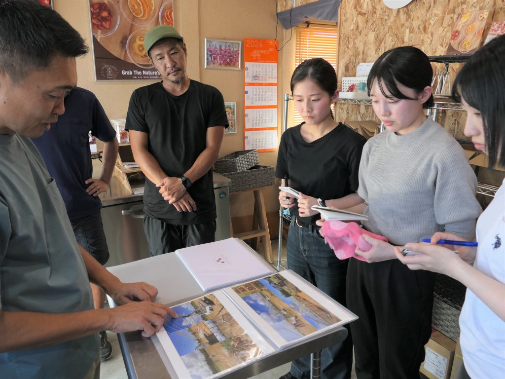 ドライド₋ワンズ様は設立して2年の会社、更地にビニールハウスを建てるところから始められたそうです。添加物、砂糖、食塩等を一切使用しない栄養がつまったドライフーズを作られています。学生は熱心にメモをとりながらお話伺いました。