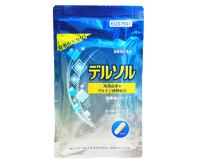 全く未知の領域である食品分野でしたが、数々の研究と試行錯誤の末、塩分吸着サプリメント「デルソル」商品を開発。このサプリメントには、昆布やわかめなどの海藻に含まれるぬめり成分「アルギン酸類」が含まれています。アルギン酸類は食物繊維の一種で、体内で消化されずに排出されるだけでなく、塩分を吸着する効果があることがさまざまな研究で明らかになっています。その特性を活かし、独自の配合を組みあわせて作られたのが「デルソル」です。現在、デルソルは透析患者様だけではなく、多くのお客様に愛される商品となっています。