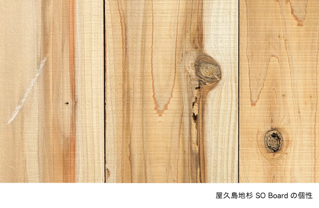ダイナミックな木目とはっきりとした濃淡、そして油分を多く含み防腐性・耐久性にも優れる屋久島地杉。プロジェクトスタートから 10 周年を迎える今、屋久島地杉の魅力を改めて多くの方へ伝えるべく誕生したのがこの《SO Board》です。
