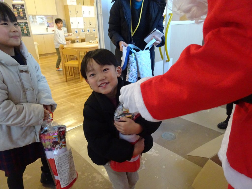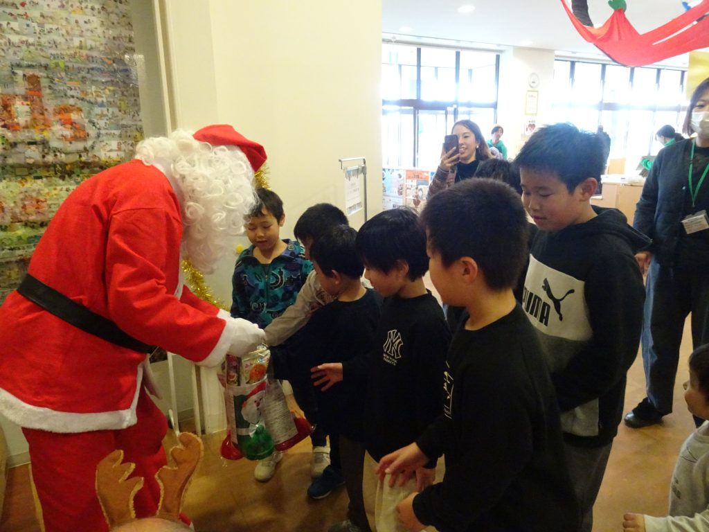 今年も530個の沢山のお菓子のつまったクリスマスブーツを用意し、サンタクロースから子どもたちへ一つずつ手渡ししました。子どもたちの笑顔あふれるクリスマスになりました。