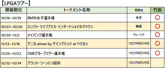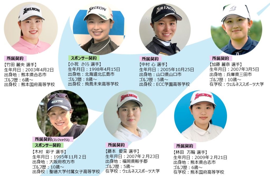 ヤマエグループ契約選手は竹田麗央選手、小祝さくら選手、中村心選手、加藤麗奈選手、木村彩子選手、藤本愛菜選手、林田万輪選手の 7 名となりました。各選手の2025年ツアー出場予定をお知らせいたします。