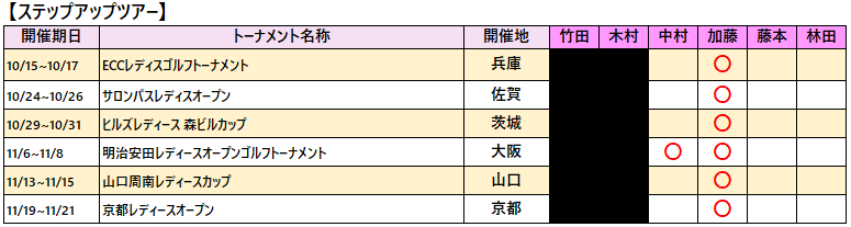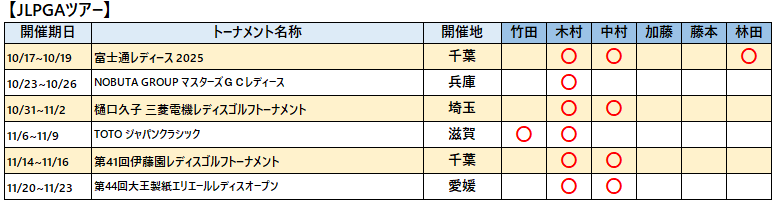 各選手の2025年ツアー出場予定は以下の通りです。