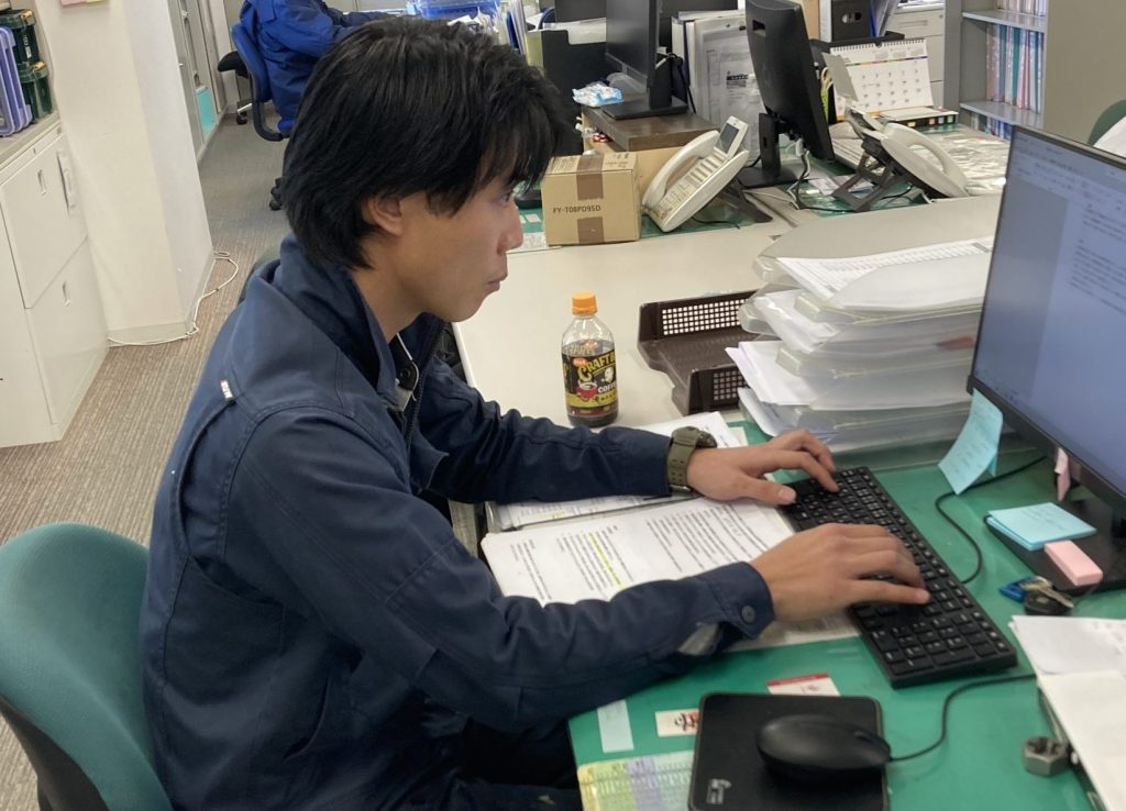 通常業務の合間に「工事部マニュアル作成」を行っております。マニュアルを作ることで自分の勉強にもなり、これから入社してくる新人さんにも役立つものを作るために本年から作り始めました。