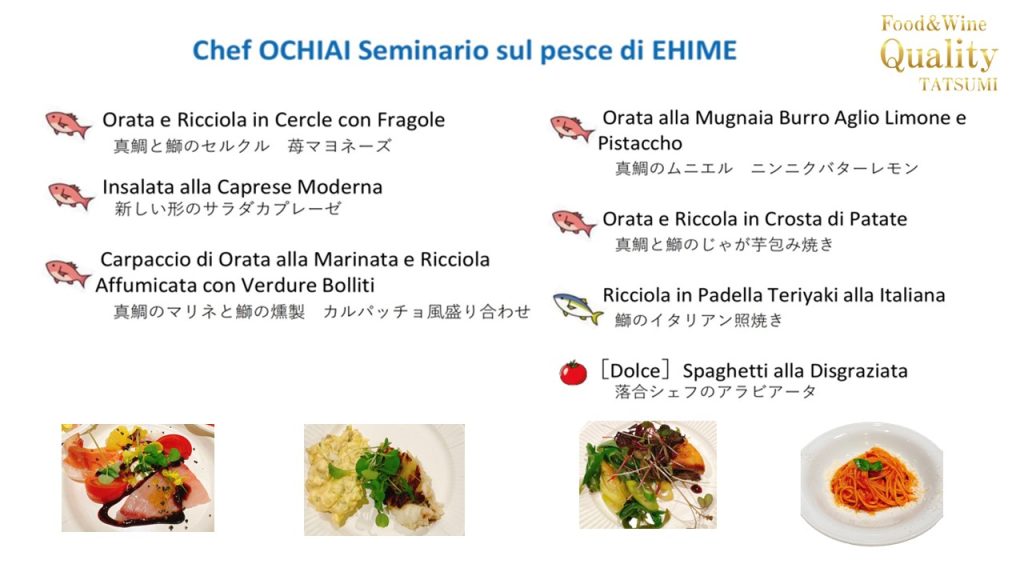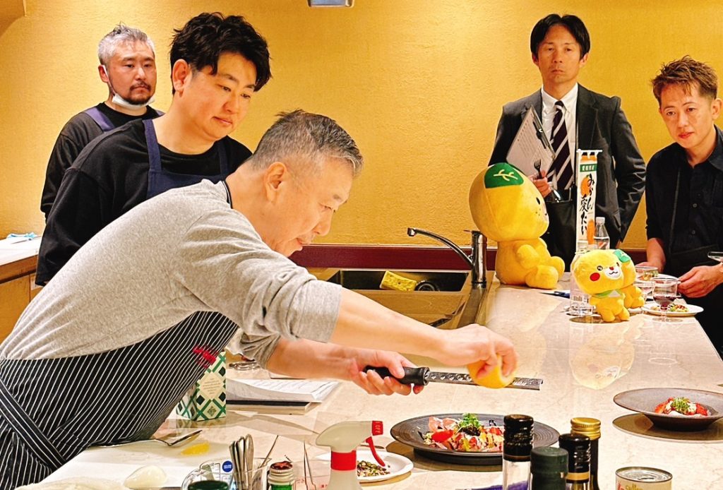 2025年3月24日、イタリアン食材を扱うTATSUMIにて愛媛県漁政課とのタイアップイベント、「落合務シェフの愛媛県産水産物メニュー販促提案セミナー」が開催されました。