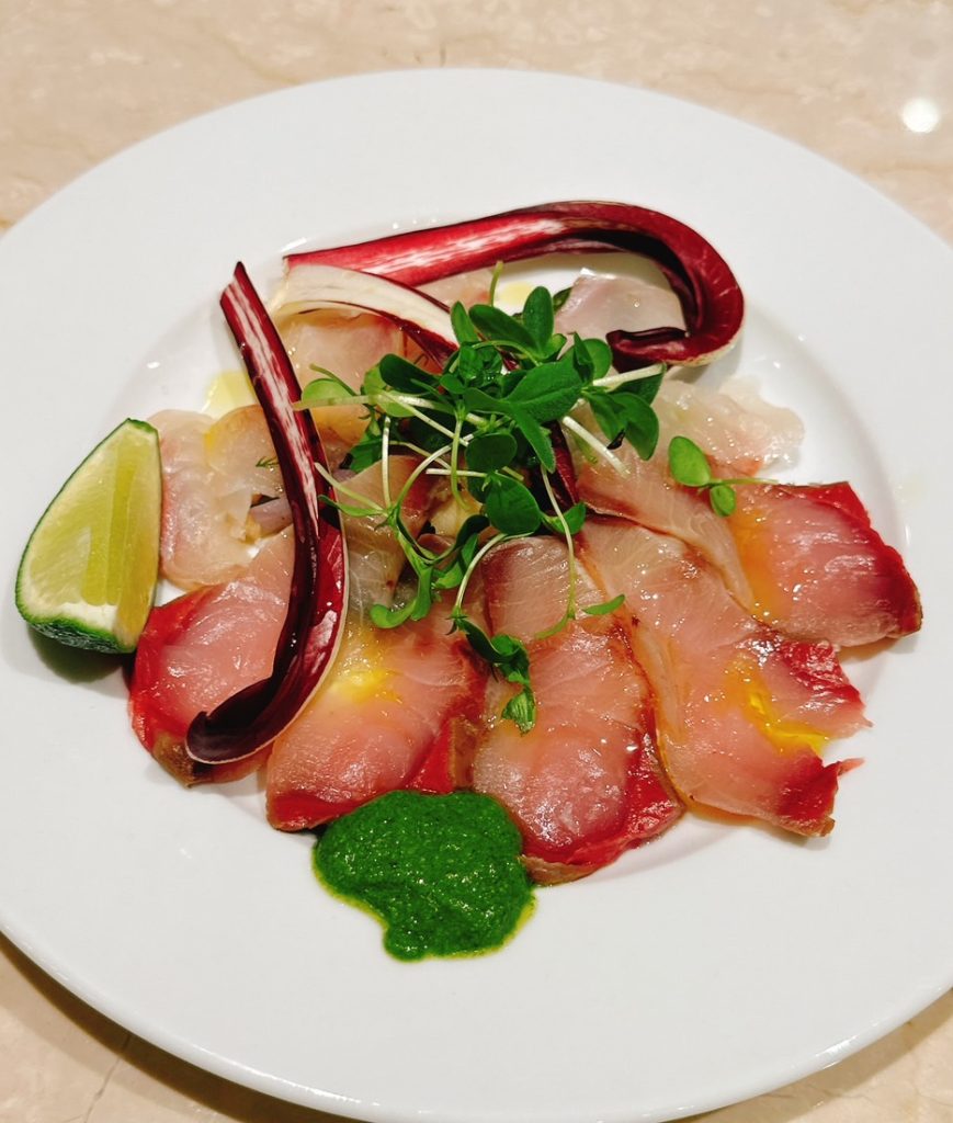当日に新しいソースを考案して、グリーンソースをカルパッチョに合わせたり、メニューを頭の中で熟成させるのも料理の楽しさです。