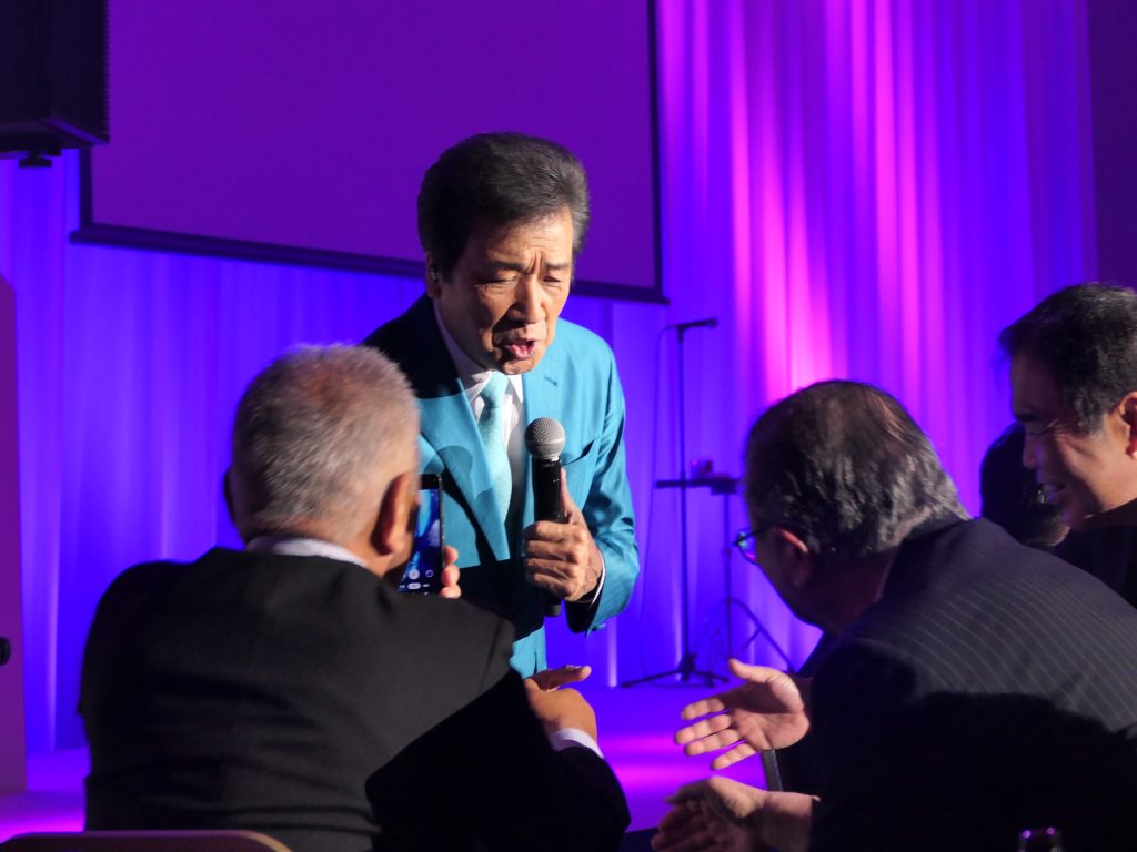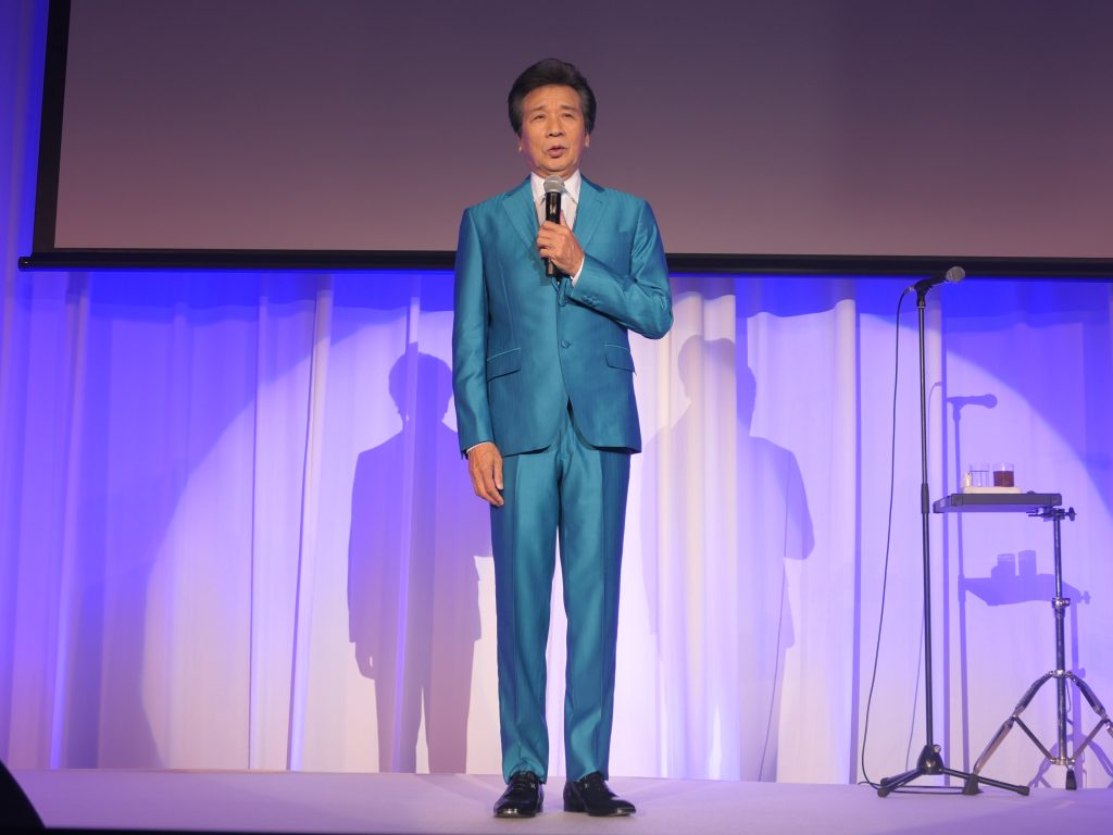 懇談会のラストには、サプライズゲストで前川清さんが登場。抜群の歌唱力と軽快なトークで会場は大盛り上がりでした。ステージ後半には歌いながら会場を回っていただき、参加者も大賑わいでした。