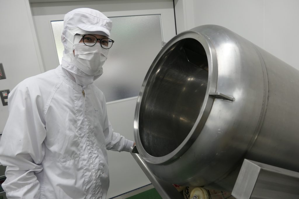 入社後、まず半年間の現場研修がありました。処理、加熱、包装、梱包といった各工程を経験し、製造の流れや現場で使う機械の特徴や能力を学びました。そして研修を終えた後、開発課に配属されました。現在は、開発課でお客様からの依頼情報をもとにサンプルを作りフィードバックから改良の業務を主に行っています。