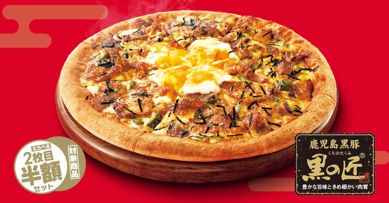 ・内容:「黒豚月見ピザ/マヨチキ月見ピザのハーフ&ハーフ」1枚と