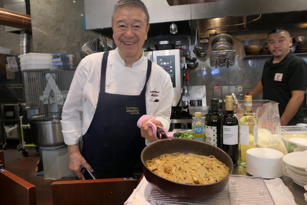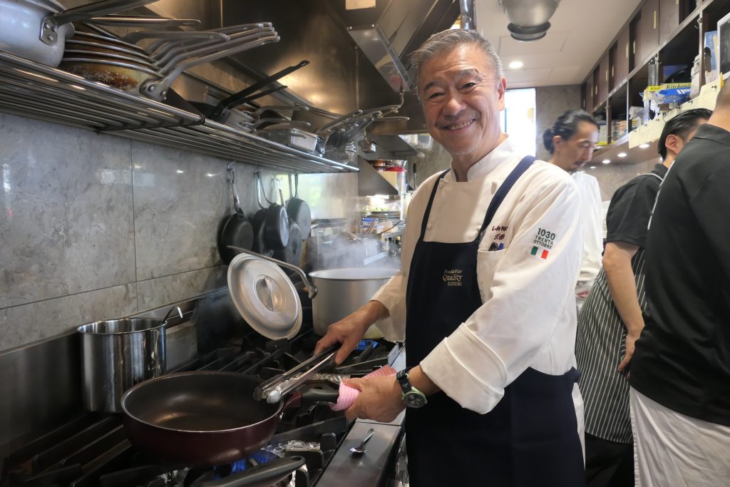 落合シェフのライブキッチンでは、ポルチーニのスパゲッティをはじめ、様々な種類のパスタを振舞っていただき、その味を味わったお客様はパスタの美味しさに魅了されていました。