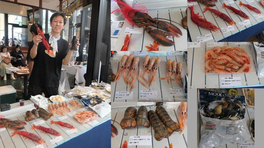 主に水産関連の輸入食材を取り扱っている「日東商事」様のブースでは、48年前から同社が日本で初めて輸入開始した活オマール海老のほか、オーストラリア産スカンピ等の高級食材が展示されていました。活オマール海老については『持続可能な漁業で獲られた水産物』のみに認められる「MSC認証」を取得しており、同社ではSDGsの取り組みにも積極的に取り組まれています。