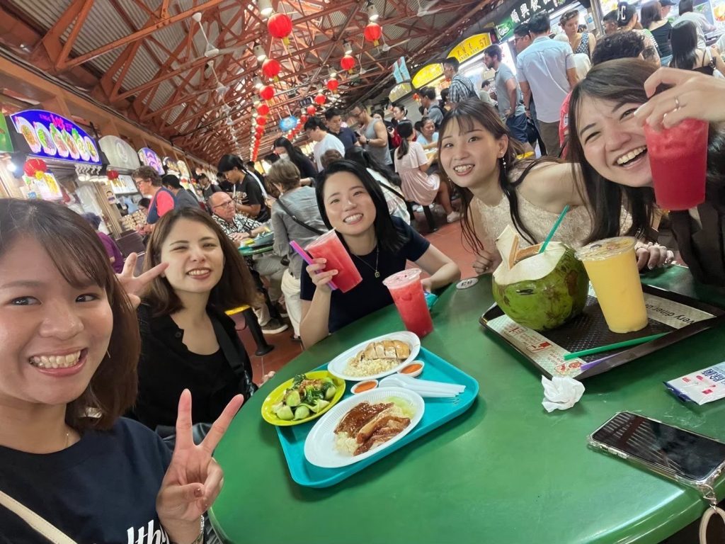 食べ物もバラエティ豊かで、ローカルフードから日本食まで楽しめるので、食生活も充実しています。日本からは知り合いが遊びにきてくれることもあり、先日はヤマエ久野の同僚がシンガポールまで来てくれました!