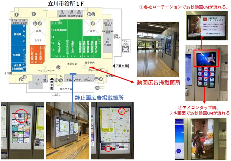 先日リニューアルされました立川市役所の電子掲示板(2か所)におきましてアスティークの広告が掲出されました。