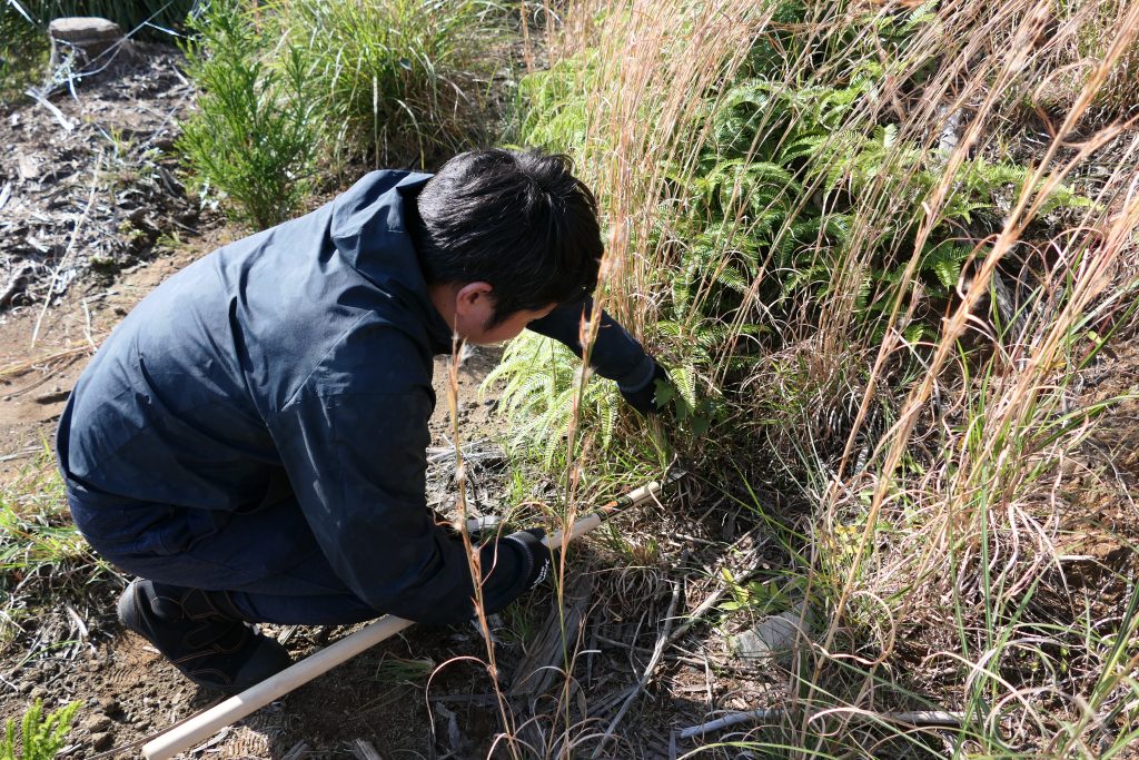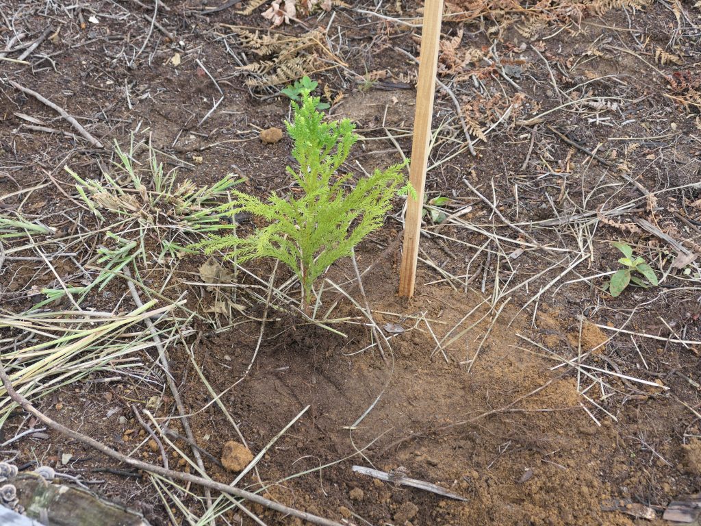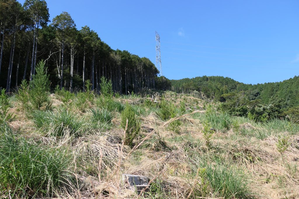 今回の作業では、植樹から2年目を迎えた杉の苗木が健やかに成長できるよう、周囲に生い茂った雑草や低木を丁寧に刈り取りました。下刈りは苗木の成長を妨げる草木を取り除く重要な作業であり、地道ながら森づくりには欠かせない工程です。