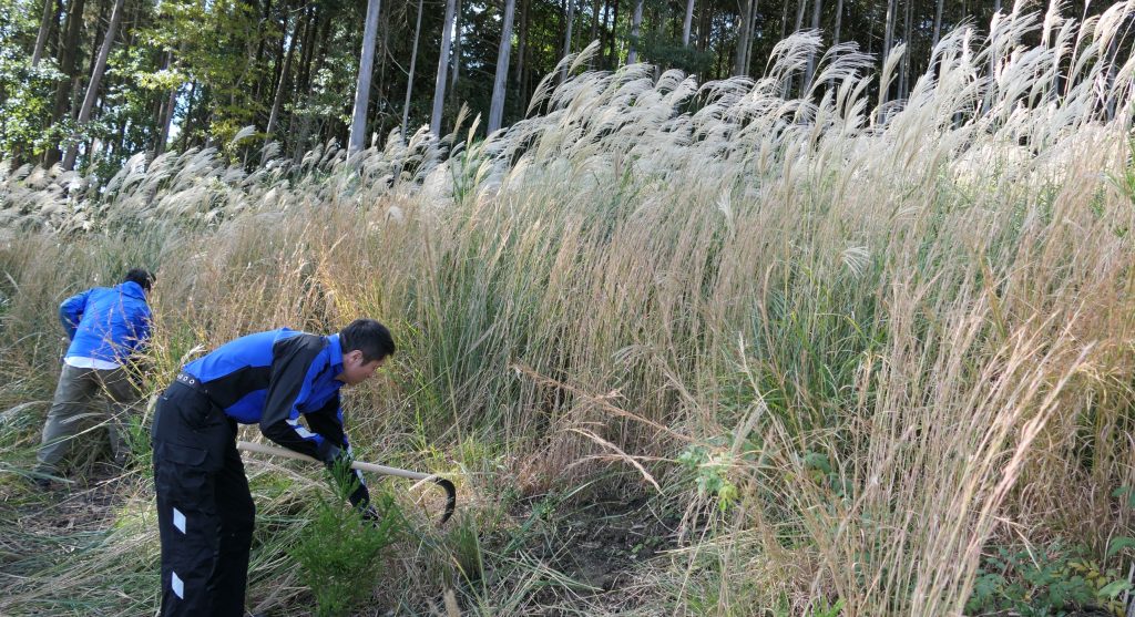 2025年11月8日、宮崎県えびの市にある「ヤマエの森」において、社員および関係者による下刈り作業を実施しました。